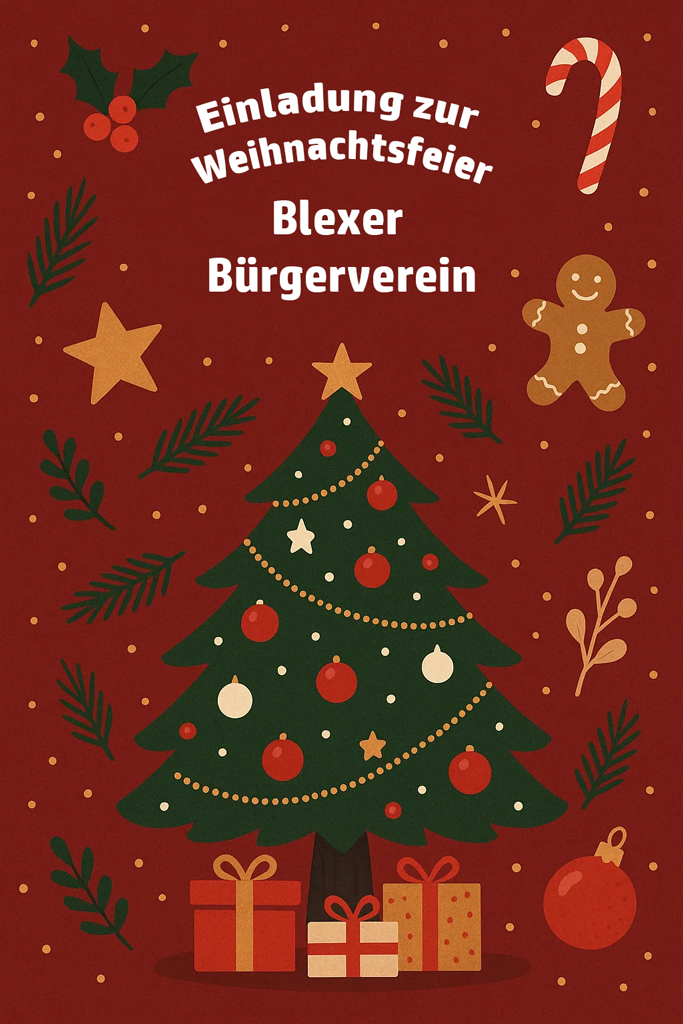 Der Bürgerverein Blexen lädt seine Mitglieder für Freitag, 28. November 2025, zur Weihnachtsfeier ein. Sie findet ab 15.00 Uhr im Restaurant Weserschlößchen in Blexen statt. Die Teilnehmer können bei Kaffee und Kuchen einen gemütlichen Nachmittag verbringen. Bei der Veranstaltung werden, wie in den Jahren zuvor, auch die langjährigen Mitglieder geehrt. Anmeldungen nimmt Petra Czeranowicz unter […]